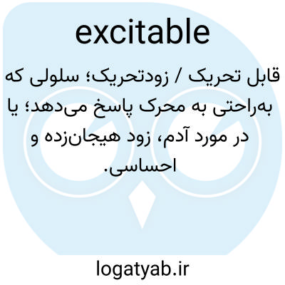 قابل تحریک / زودتحریک؛ سلولی که به‌راحتی به محرک پاسخ می‌دهد؛ یا در مورد آدم، زود هیجان‌زده و احساسی.