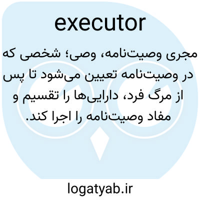 📌 قانون، شخصی که در وصیتنامه متوفی برای اجرای مفاد آن وصیتنامه نامگذاری شده است.