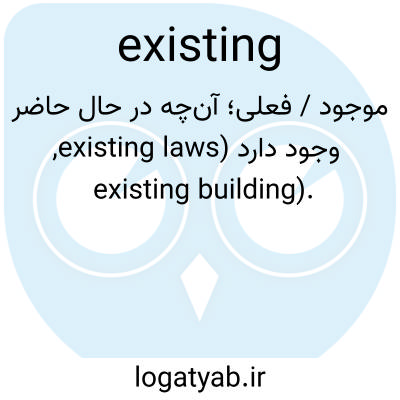 موجود / فعلی؛ آن‌چه در حال حاضر وجود دارد (existing laws, existing building).