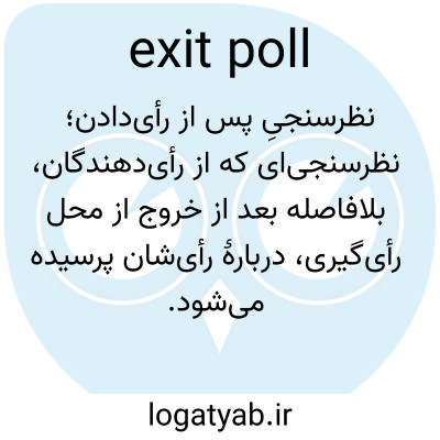 📌 نظرسنجی‌ای که از درصد کمی از رأی‌دهندگان هنگام خروج از حوزه‌های رأی‌گیری گرفته می‌شود و برای پیش‌بینی نتیجه انتخابات یا تعیین دلایل تصمیم‌گیری در مورد رأی دادن استفاده می‌شود.