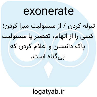 📌 تبرئه کردن، گویی از یک اتهام؛ عاری از گناه یا سرزنش کردن؛ تبرئه کردن