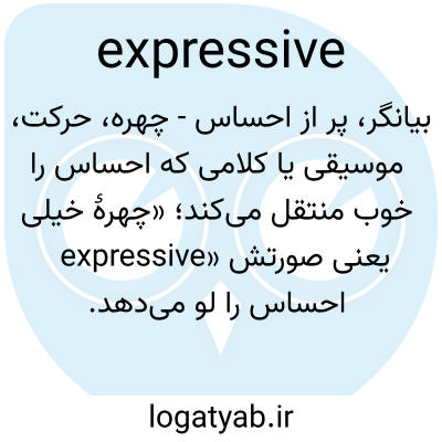 بیانگر، پر از احساس - چهره، حرکت، موسیقی یا کلامی که احساس را خوب منتقل می‌کند؛ «چهرهٔ خیلی expressive» یعنی صورتش احساس را لو می‌دهد.