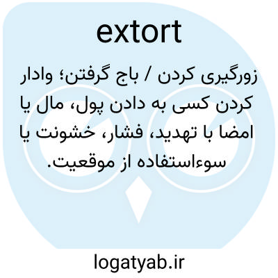 📌 با خشونت، ارعاب یا سوءاستفاده از قدرت، (پول، اطلاعات و غیره) را از شخصی گرفتن یا به زور گرفتن؛ با زور، شکنجه، تهدید یا موارد مشابه به دست آوردن