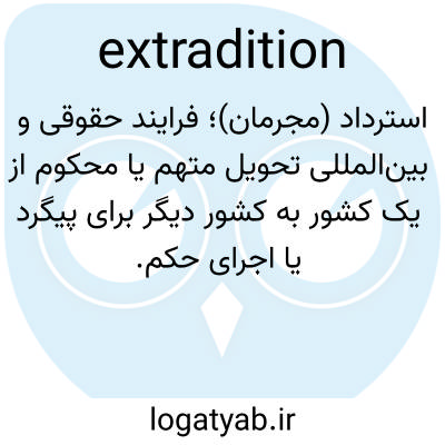 📌 رویه‌ای که طی آن یک دولت یا ملت، پس از دریافت درخواست رسمی از سوی دولت یا ملت دیگر، فردی را که در آن حوزه قضایی متهم یا محکوم به جرم شده است، به آن حوزه قضایی دوم تحویل می‌دهد.
