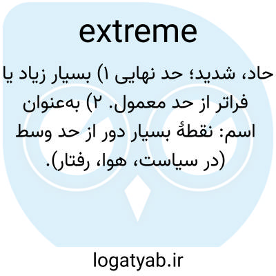 📌 یک عمل، معیار، وضعیت و غیره افراطی