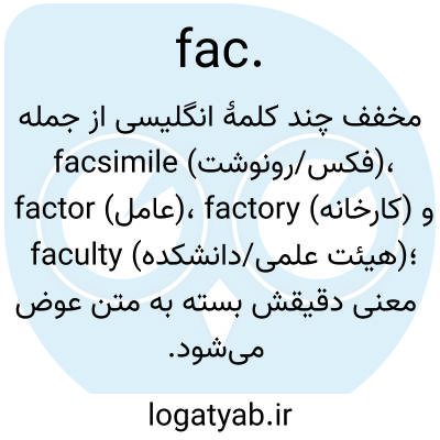مخفف چند کلمهٔ انگلیسی از جمله facsimile (فکس/رونوشت)، factor (عامل)، factory (کارخانه) و faculty (هیئت علمی/دانشکده)؛ معنی دقیقش بسته به متن عوض می‌شود.