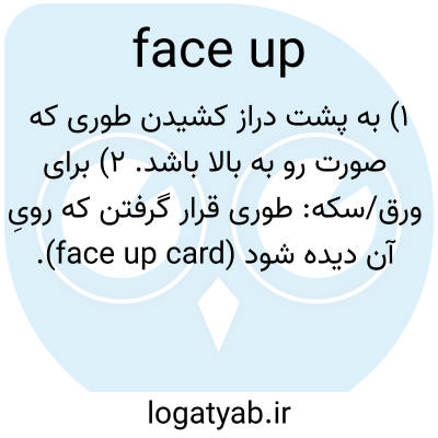 ۱) به پشت دراز کشیدن طوری که صورت رو به بالا باشد. ۲) برای ورق/سکه: طوری قرار گرفتن که رویِ آن دیده شود (face up card).