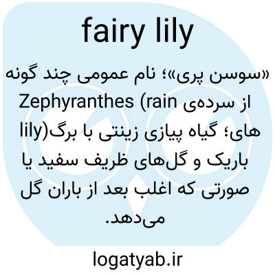 «سوسن پری»؛ نام عمومی چند گونه از سرده‌ی Zephyranthes (rain lily)؛ گیاه پیازی زینتی با برگ‌های باریک و گل‌های ظریف سفید یا صورتی که اغلب بعد از باران گل می‌دهد.