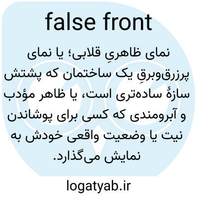 نمای ظاهریِ قلابی؛ یا نمای پرزرق‌وبرقِ یک ساختمان که پشتش سازۀ ساده‌تری است، یا ظاهر مؤدب و آبرومندی که کسی برای پوشاندن نیت یا وضعیت واقعی خودش به نمایش می‌گذارد.