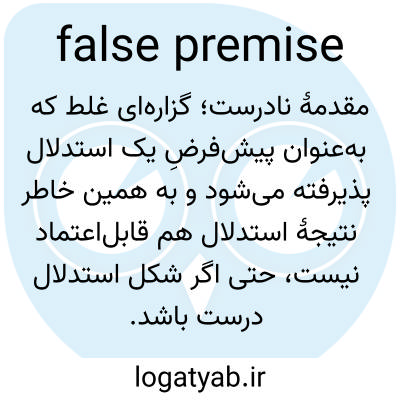 📌 منطق، گزارهای نادرست که با تشکیل مبنای یک استدلال، تقریباً مطمئناً به نتیجهای نامعتبر یا از نظر منطقی نادرست منجر میشود.