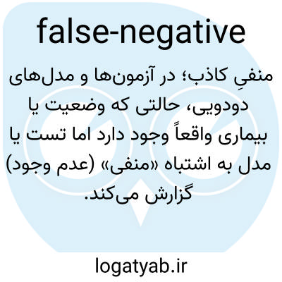 منفیِ کاذب؛ در آزمون‌ها و مدل‌های دودویی، حالتی که وضعیت یا بیماری واقعاً وجود دارد اما تست یا مدل به اشتباه «منفی» (عدم وجود) گزارش می‌کند.