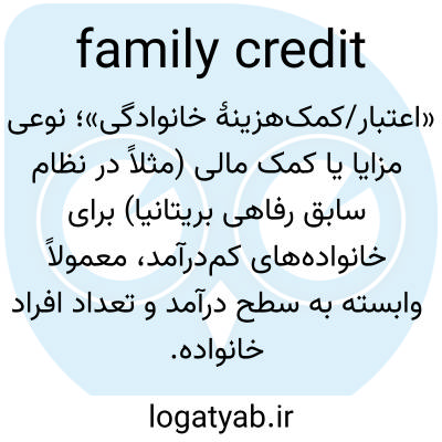 📌 (قبلاً در بریتانیا) کمکهزینهای مبتنی بر سنجش استطاعت مالی که به خانوادههای کمدرآمد با یک یا چند فرزند تحت تکفل و یک یا هر دو والدین شاغل پرداخت میشود: در سال ۱۹۹۹ با اعتبار مالیاتی خانوادههای شاغل جایگزین شد