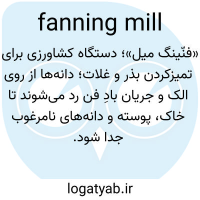 «فنّینگ میل»؛ دستگاه کشاورزی برای تمیزکردن بذر و غلات؛ دانه‌ها از روی الک و جریان بادِ فن رد می‌شوند تا خاک، پوسته و دانه‌های نامرغوب جدا شود.