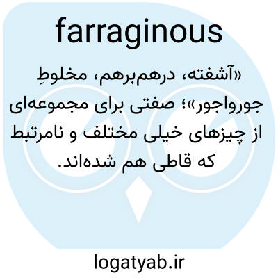 «آشفته، درهم‌برهم، مخلوطِ جورواجور»؛ صفتی برای مجموعه‌ای از چیزهای خیلی مختلف و نامرتبط که قاطی هم شده‌اند.