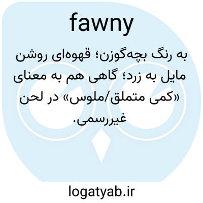 به رنگ بچه‌گوزن؛ قهوه‌ای روشن مایل به زرد؛ گاهی هم به معنای «کمی متملق/ملوس» در لحن غیررسمی.