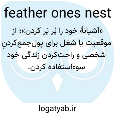 📌 کسب ثروت برای خود، به ویژه با بهرهگیری از موقعیت خود یا استفاده از اموال دیگران. به عنوان مثال، بسیاری از مشاغل مشاورهای سودآور بیل به او این امکان را داد که لانه خود را کاملاً راحت پر کند. این عبارت به پرندگانی اشاره دارد که لانهای نرم برای تخمهای خود میسازند. [اواسط دهه ۱۵۰۰]