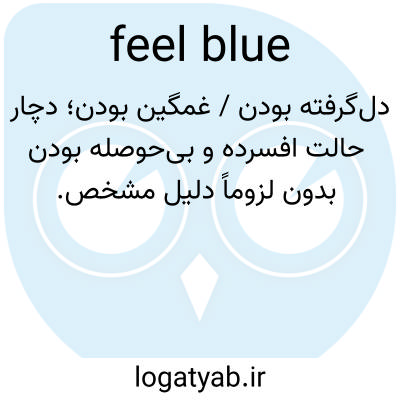 📌 افسرده یا غمگین بودن، مثلاً بعد از اینکه به من گفت دارد میرود، واقعاً احساس غم میکردم. استفاده از رنگ آبی به معنای «غمگین» به اواخر دهه ۱۳۰۰ میلادی برمیگردد. همچنین به blue funk، تعریف ۲ مراجعه کنید؛ بلوز را داشته باشید.