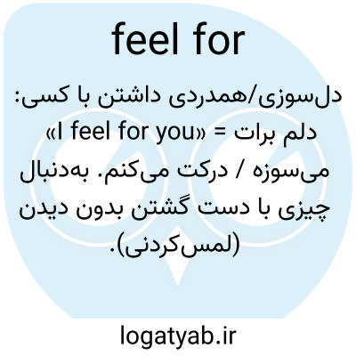 دل‌سوزی/همدردی داشتن با کسی: «I feel for you» = دلم برات می‌سوزه / درکت می‌کنم. به‌دنبال چیزی با دست گشتن بدون دیدن (لمس‌کردنی).