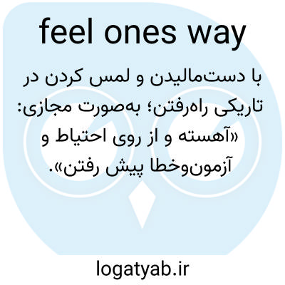 📌 با احتیاط پیش بروید، همانطور که در عبارت «تا زمانی که ندانیم با چه کسی طرف هستیم، باید راه خود را پیدا کنیم» آمده است. این عبارت به لمس کردن اشاره دارد، زمانی که کسی قادر به دیدن نیست. [اوایل دهه ۱۶۰۰] همچنین به عبارت «احساس کردن» در تعریف ۱ مراجعه کنید.