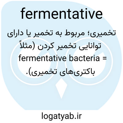 تخمیری؛ مربوط به تخمیر یا دارای توانایی تخمیر کردن (مثلاً fermentative bacteria = باکتری‌های تخمیری).