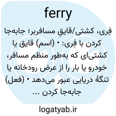 📌 یک سرویس تجاری با پایانهها و قایقها برای حمل و نقل افراد، اتومبیلها و غیره، از طریق رودخانه یا سایر آبهای نسبتاً کوچک.