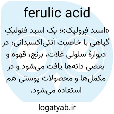 «اسید فِرولیک»؛ یک اسید فنولیکِ گیاهی با خاصیت آنتی‌اکسیدانی، در دیوارهٔ سلولی غلات، برنج، قهوه و بعضی دانه‌ها یافت می‌شود و در مکمل‌ها و محصولات پوستی هم استفاده می‌شود.