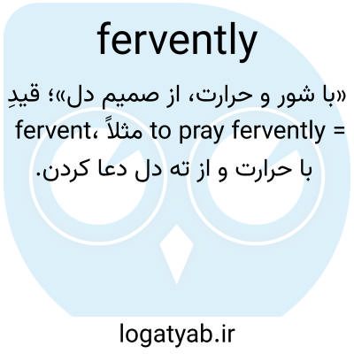 «با شور و حرارت، از صمیم دل»؛ قیدِ fervent، مثلاً to pray fervently = با حرارت و از ته دل دعا کردن.