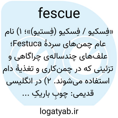 «فِسکیو / فِسکیو (فِستیو)»؛ ۱) نام عام چمن‌های سردهٔ Festuca؛ علف‌های چندساله‌ی چراگاهی و تزئینی که در چمن‌کاری و تغذیهٔ دام استفاده می‌شوند. ۲) در انگلیسی قدیمی: چوبِ باریکِ راهنما برای نشان‌دادن کلمات هنگام خواندن به بچه‌ها.