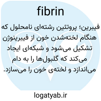 فیبرین؛ پروتئین رشته‌ای نامحلول که هنگام لخته‌شدن خون از فیبرینوژن تشکیل می‌شود و شبکه‌ای ایجاد می‌کند که گلبول‌ها را به دام می‌اندازد و لخته‌ی خون را می‌سازد.