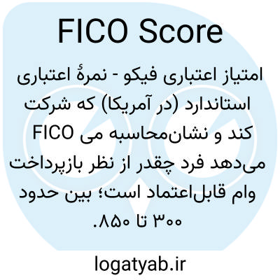 📌 نوعی امتیاز اعتباری که توسط اکثر بانک‌ها و صادرکنندگان کارت اعتباری برای ارزیابی اعتبار یک فرد استفاده می‌شود: امتیاز FICO از حداقل ۳۰۰ تا حداکثر ۸۵۰ متغیر است، و امتیاز ۷۰۰ یا بالاتر عموماً امتیاز اعتباری خوبی محسوب می‌شود.