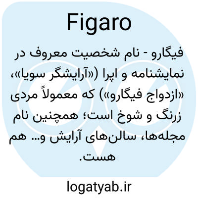 📌 یک آرایشگر حیلهگر اسپانیایی که به عنوان شخصیتی در نمایشنامههای فرانسوی قرن هجدهم ظاهر میشود. اپراهای «عروسی فیگارو» اثر ولفگانگ آمادئوس موتسارت و «آرایشگر سویل» اثر جواکینو روسینی درباره فیگارو هستند.