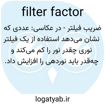 ضریب فیلتر - در عکاسی: عددی که نشان می‌دهد استفاده از یک فیلتر نوری چقدر نور را کم می‌کند و چه‌قدر باید نوردهی را افزایش داد.