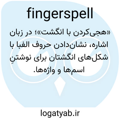 «هجی‌کردن با انگشت»؛ در زبان اشاره، نشان‌دادن حروف الفبا با شکل‌های انگشتان برای نوشتنِ اسم‌ها و واژه‌ها.