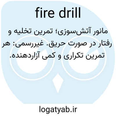 مانور آتش‌سوزی؛ تمرین تخلیه و رفتار در صورت حریق. غیررسمی: هر تمرین تکراری و کمی آزاردهنده.