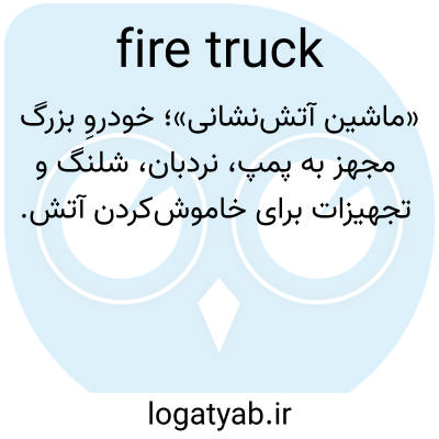 «ماشین آتش‌نشانی»؛ خودروِ بزرگ مجهز به پمپ، نردبان، شلنگ و تجهیزات برای خاموش‌کردن آتش.
