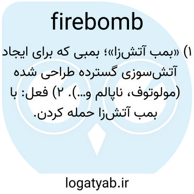 ۱) «بمب آتش‌زا»؛ بمبی که برای ایجاد آتش‌سوزی گسترده طراحی شده (مولوتوف، ناپالم و…). ۲) فعل: با بمب آتش‌زا حمله کردن.