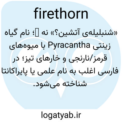 📌 هر یک از چندین درختچه آسیایی همیشه سبز و خاردار متعلق به جنس پیراکانتا، از خانواده گل سرخ، که بسیاری از گونه‌های آن به خاطر شاخ و برگ و میوه‌های زینتی‌شان کشت می‌شوند.
