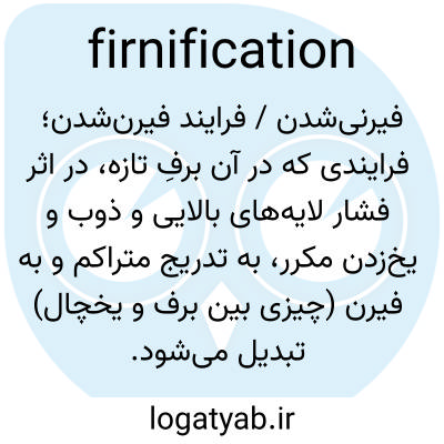 فیرنیشدن / فرایند فیرنشدن؛ فرایندی که در آن برفِ تازه، در اثر فشار لایههای بالایی و ذوب و یخزدن مکرر، به تدریج متراکم و به فیرن (چیزی بین برف و یخچال) تبدیل میشود.