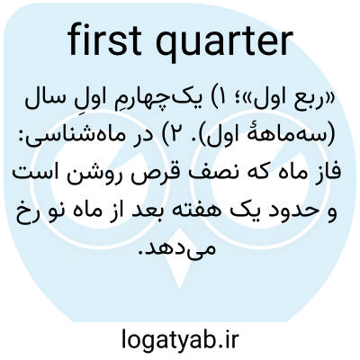 📌 لحظه‌ای، تقریباً یک هفته پس از ماه نو، که نیمی از قرص ماه توسط خورشید روشن می‌شود.