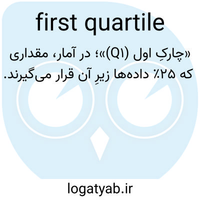 📌 (در توزیع فراوانی) کوچکترین چارک؛ بیست و پنجمین صدک؛ مقداری از متغیر که یک چهارم عناصر زیر آن قرار دارند.
