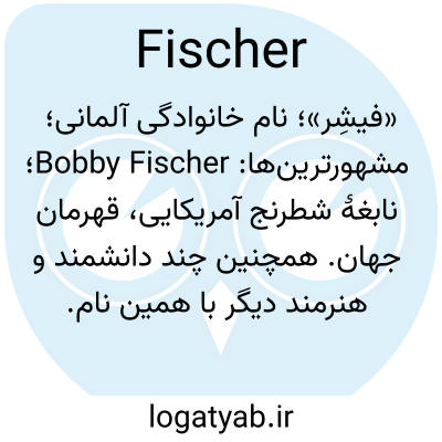 «فیشِر»؛ نام خانوادگی آلمانی؛ مشهورترین‌ها: Bobby Fischer؛ نابغهٔ شطرنج آمریکایی، قهرمان جهان. همچنین چند دانشمند و هنرمند دیگر با همین نام.