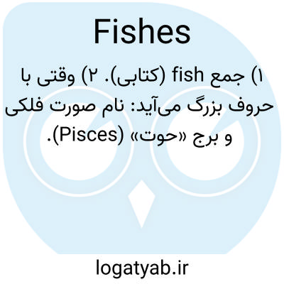 ۱) جمع fish (کتابی). ۲) وقتی با حروف بزرگ می‌آید: نام صورت فلکی و برج «حوت» (Pisces).