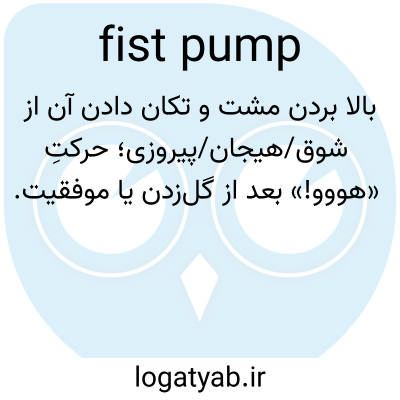 📌 حرکتی از روی اشتیاق، پیروزی و غیره که در آن فرد مشت خود را بالا میبرد و ساعد خود را به سرعت و با قدرت به جلو یا پایین فشار میدهد.