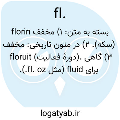 بسته به متن: ۱) مخفف florin (سکه). ۲) در متون تاریخی: مخفف floruit (دورهٔ فعالیت). ۳) گاهی برای fluid (مثل fl. oz.).