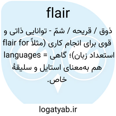ذوق / قریحه / شمّ - توانایی ذاتی و قوی برای انجام کاری (مثلاً flair for languages = استعداد زبان)؛ گاهی هم به‌معنای استایل و سلیقهٔ خاص.