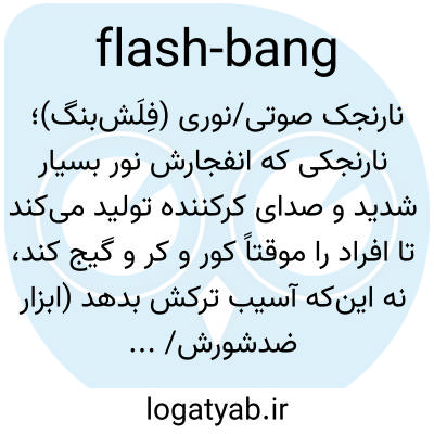 📌 نارنجک فلش بنگ که به آن نارنجک فلش نیز گفته میشود. نوعی نارنجک که با صدای بلند و نور خیرهکنندهای منفجر میشود و برای پرت کردن حواس یا گیج کردن موقت افراد بدون آسیب رساندن به آنها استفاده میشود.
