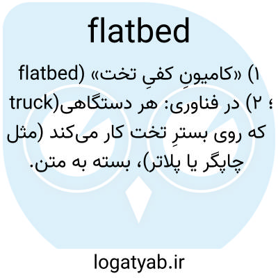 ۱) «کامیونِ کفیِ تخت» (flatbed truck)؛ ۲) در فناوری: هر دستگاهی که روی بسترِ تخت کار می‌کند (مثل چاپگر یا پلاتر)، بسته به متن.