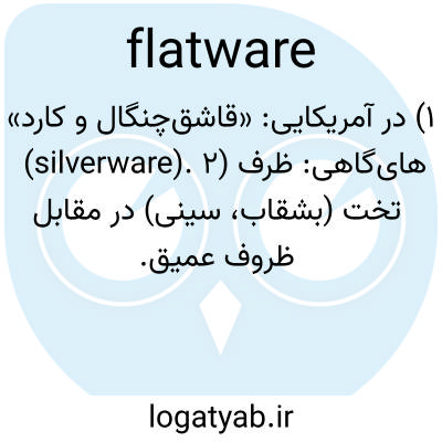 ۱) در آمریکایی: «قاشق‌چنگال و کارد» (silverware). ۲) گاهی: ظرف‌های تخت (بشقاب، سینی) در مقابل ظروف عمیق.