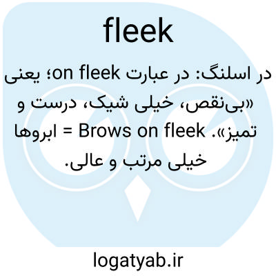 در اسلنگ: در عبارت on fleek؛ یعنی «بی‌نقص، خیلی شیک، درست و تمیز». Brows on fleek = ابروها خیلی مرتب و عالی.