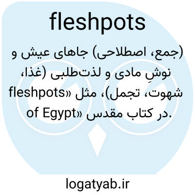 (جمع، اصطلاحی) جاهای عیش و نوشِ مادی و لذت‌طلبی (غذا، شهوت، تجمل)، مثل «fleshpots of Egypt» در کتاب مقدس.